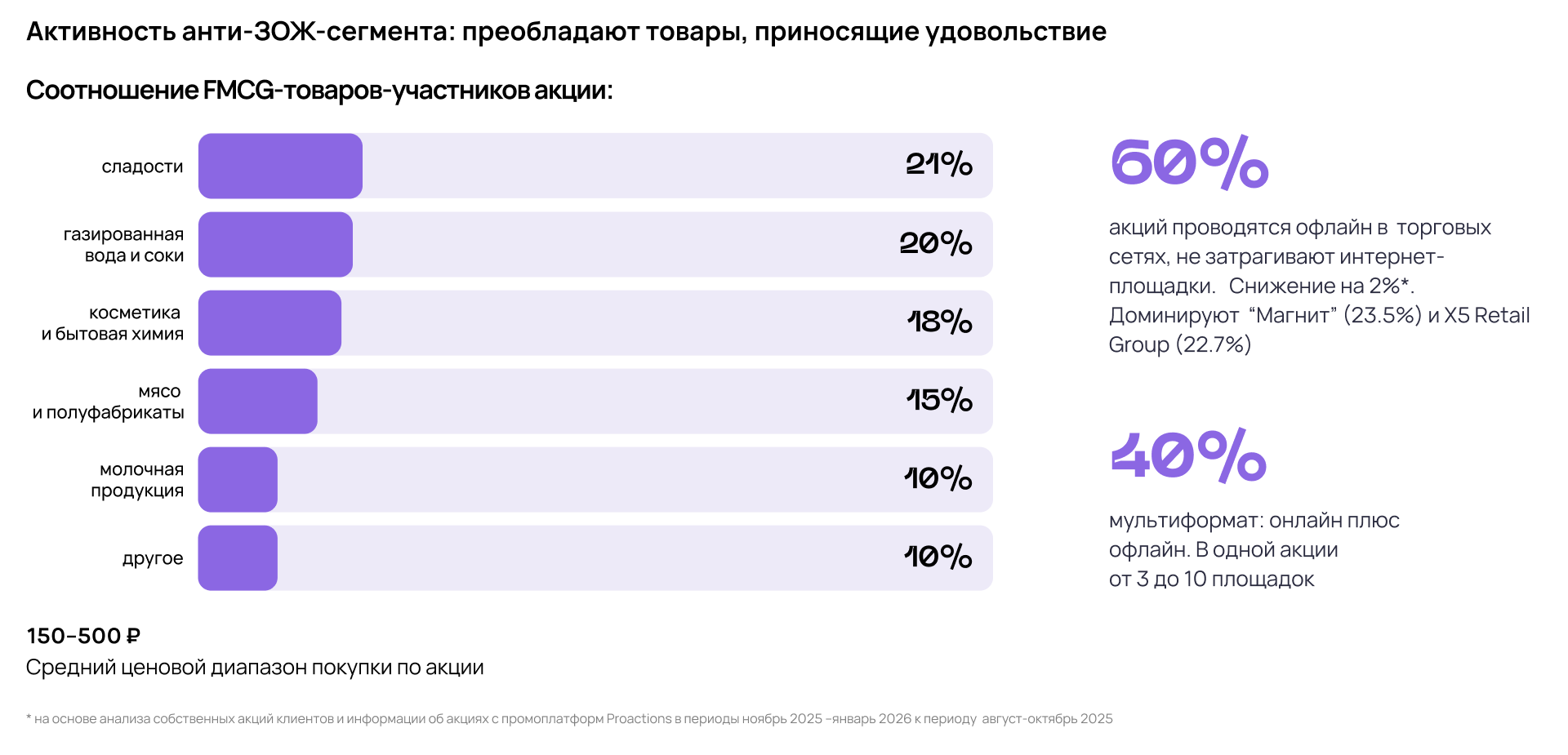 Компания Morizo проанализировала чековые акции товаров каждодневного спроса в интервале с ноября 2025 по январь 2026 и выявила новые тренды маркетинговых активностей.