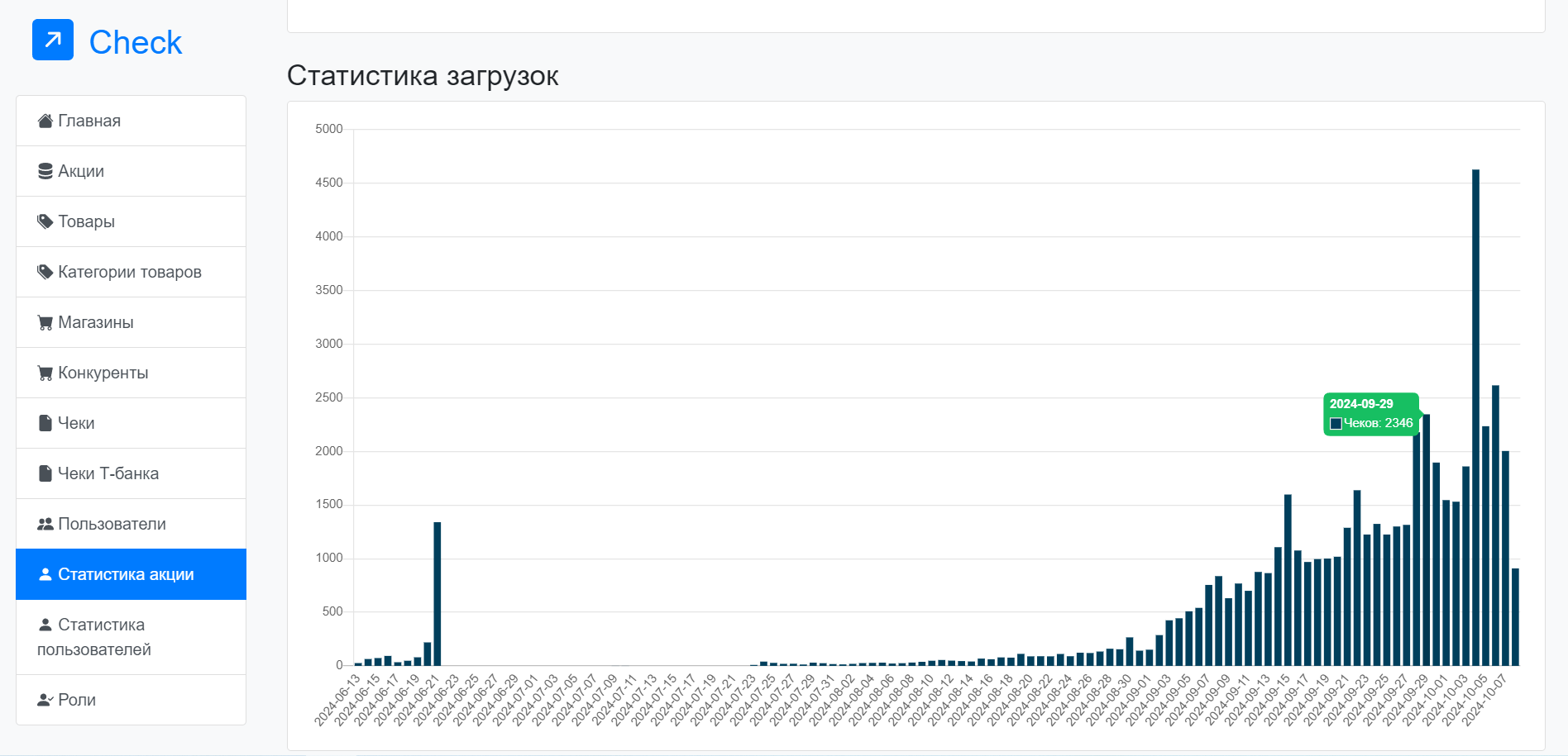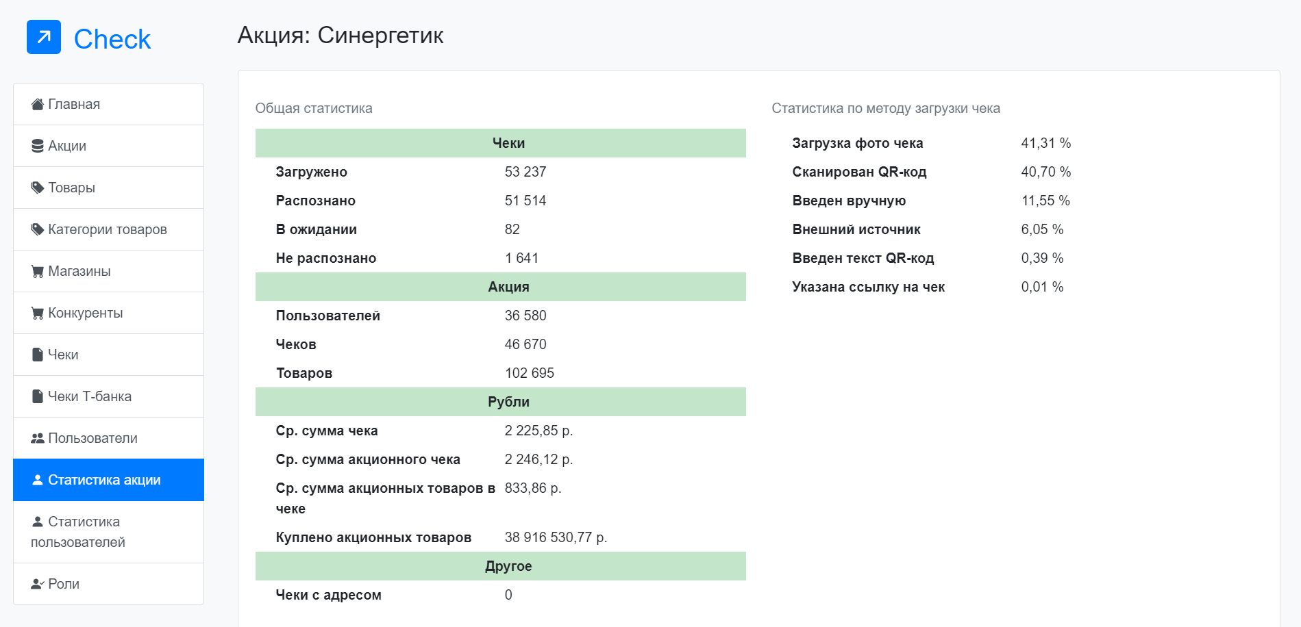 Количество чеков за второй месяц проведения акции выросло в 2 раза по сравнению с первым. В большинстве случаев от момента загрузки чека до подтверждения проходит от 1 до 3 секунд.